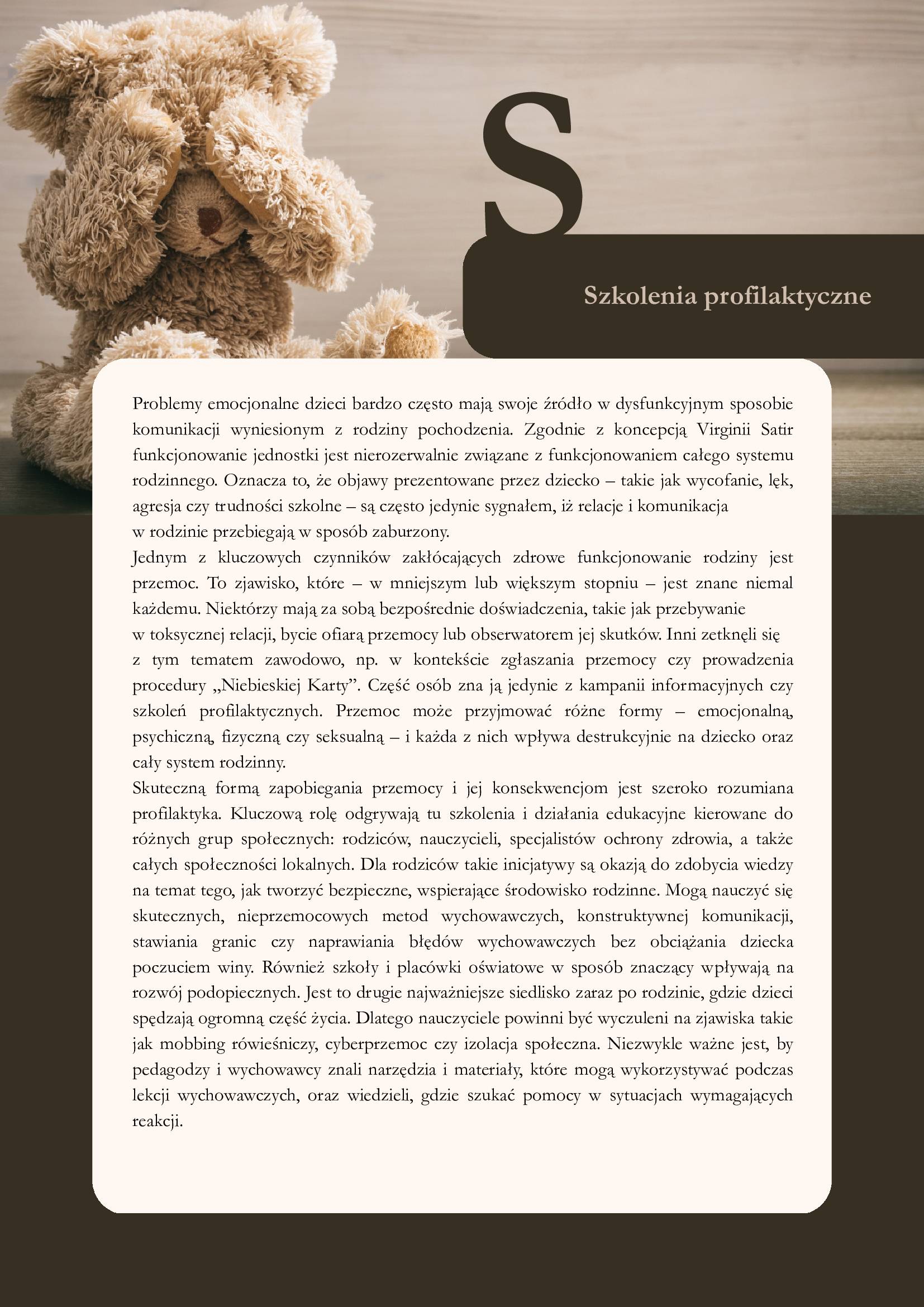 Pełen zakres materiałów edukacyjnych oraz informacje dostępne są na stronie: Przemoc wobec dzieci.
