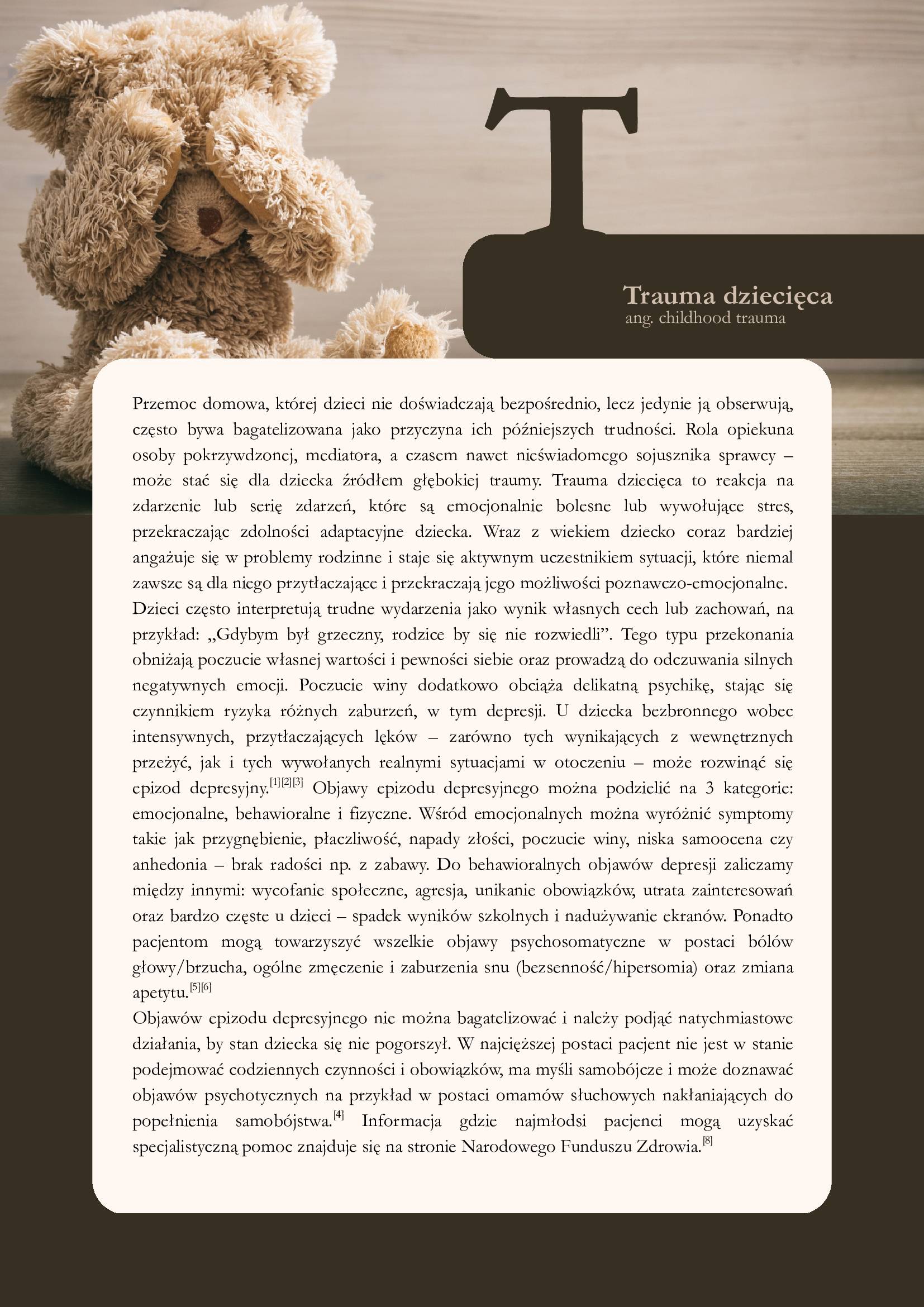 Zachęcamy serdecznie do zapoznania się z materiałem przygotowanym przez Narodowy Fundusz Zdrowia, który wspiera rozpoznawanie sygnałów przemocy psychicznej u dzieci. Materiał wskazuje, jak odpowiednio reagować, udzielać wsparcia i chronić dziecko przed dalszą krzywdą.